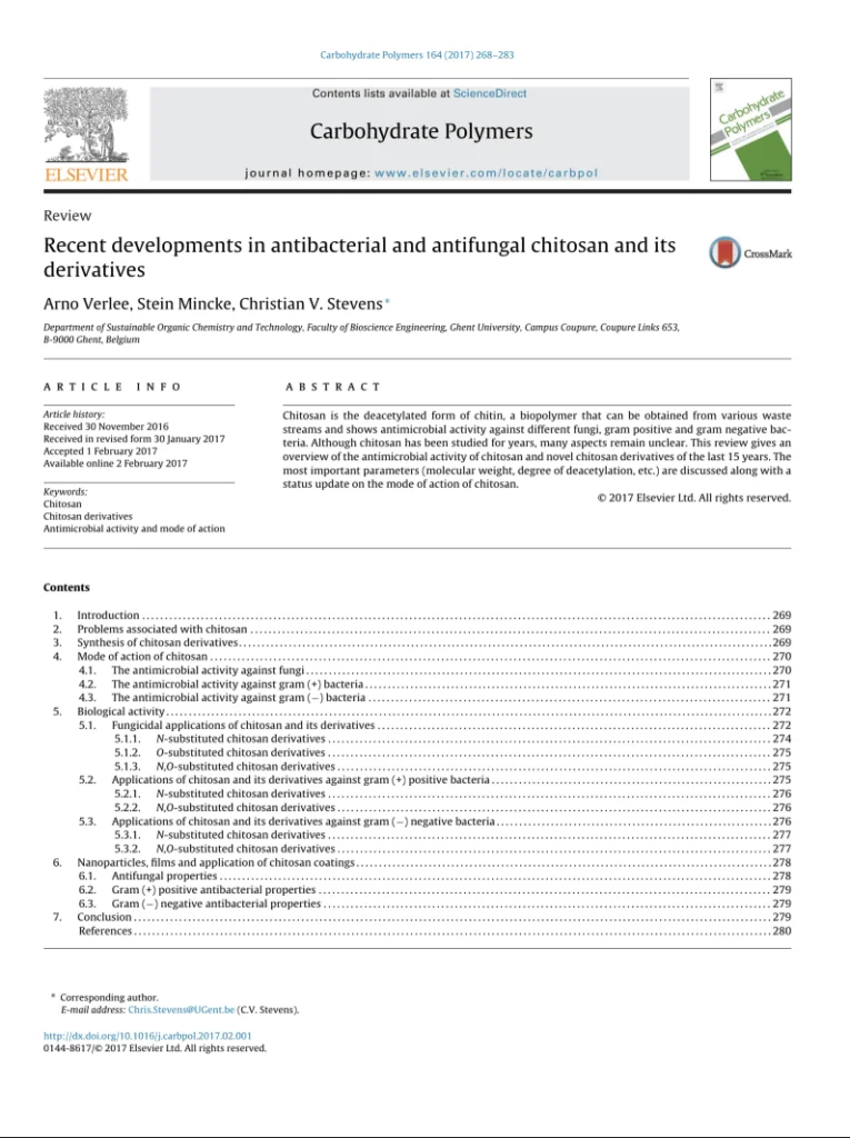 overview of the antimicrobial activity of chitosan and novel chitosan derivatives of the last 15 years. The