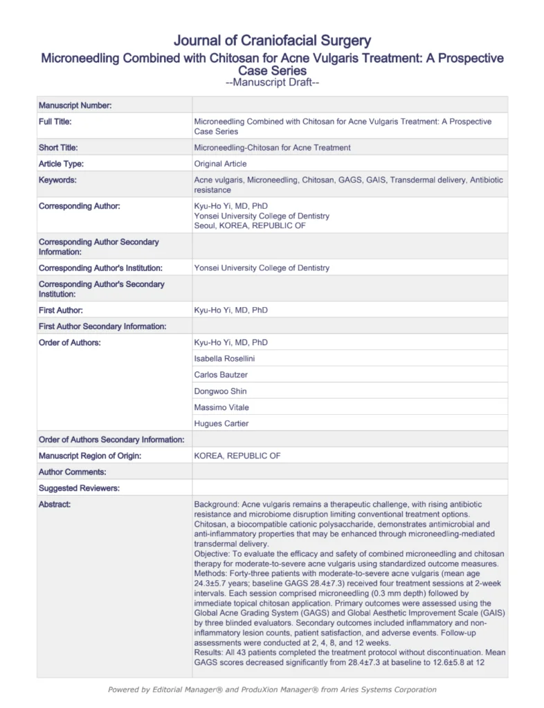 Microneedling Combined with Chitosan for Acne Vulgaris Treatment: A Prospective