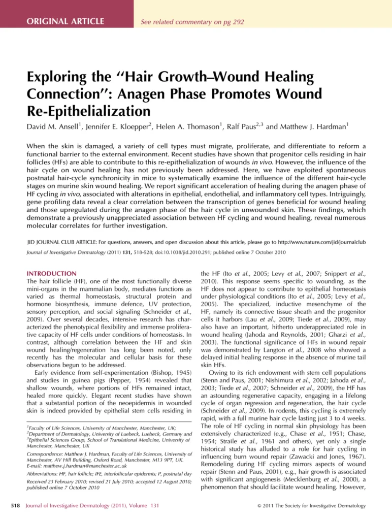 Exploring the “hair growth-wound healing connection”: anagen phase promotes wound re-epithelialization