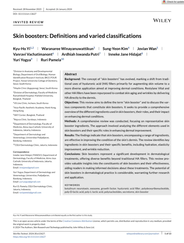 This review aims to define the term “skin booster” and to discuss the various components that constitute skin boosters. It seeks to provide a comprehensive overview of the different ingredients used in skin boosters, their roles, and their impact on enhancing dermal conditions.