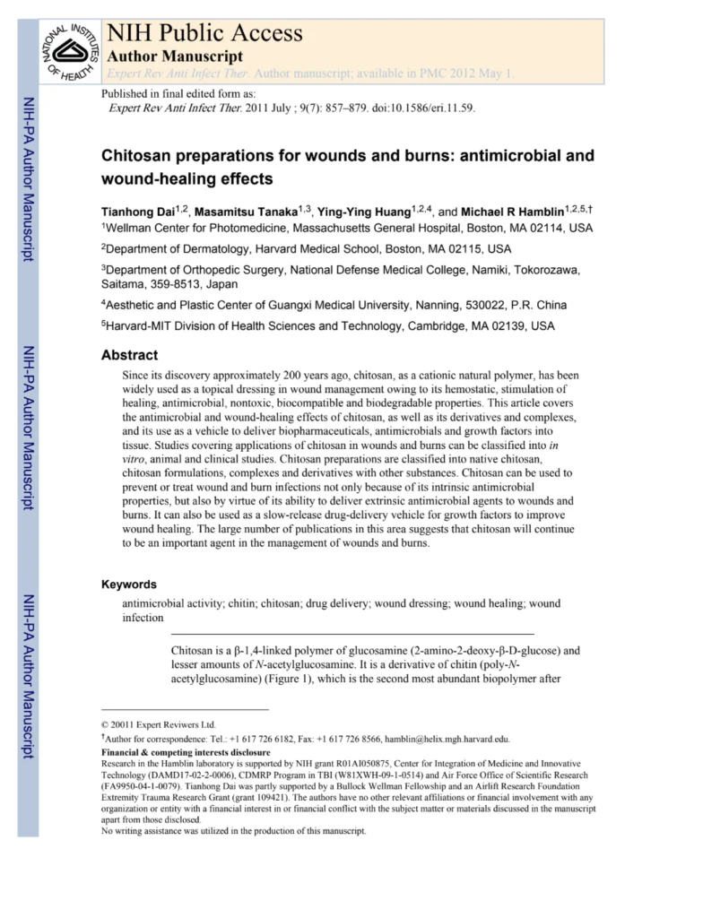 wound healing. The large number of publications in this area suggests that chitosan will continue