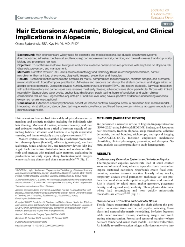 Hair extensions are widely used for cosmetic and medical reasons, but durable attachment systems (thermopolymer, adhesive, mechanical, and temporary) can impose mechanical, chemical, and thermal stresses that disrupt scalp biology and precipitate hair loss.