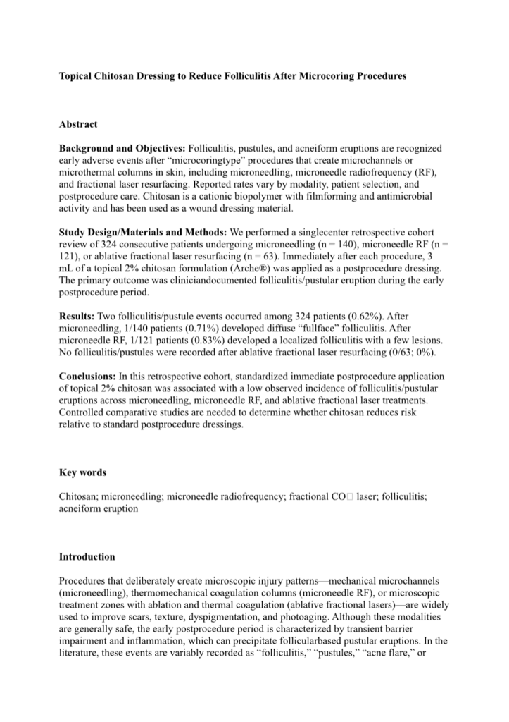 Topical Chitosan Dressing to Reduce Folliculitis After Microcoring Procedures