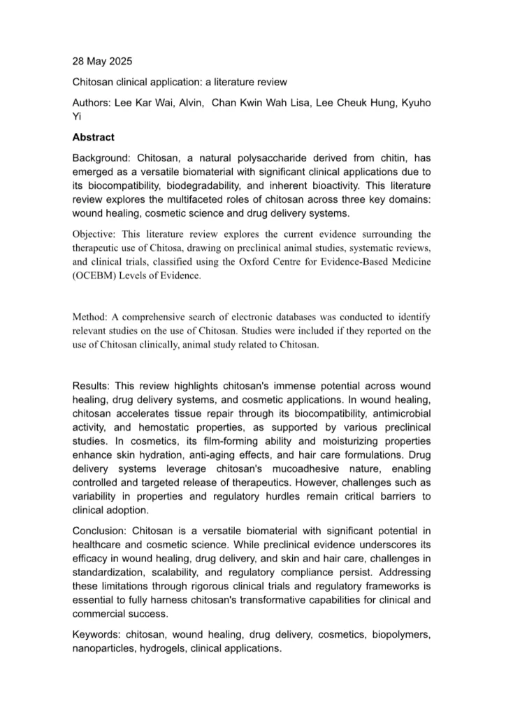 therapeutic use of Chitosa, drawing on preclinical animal studies, systematic reviews,